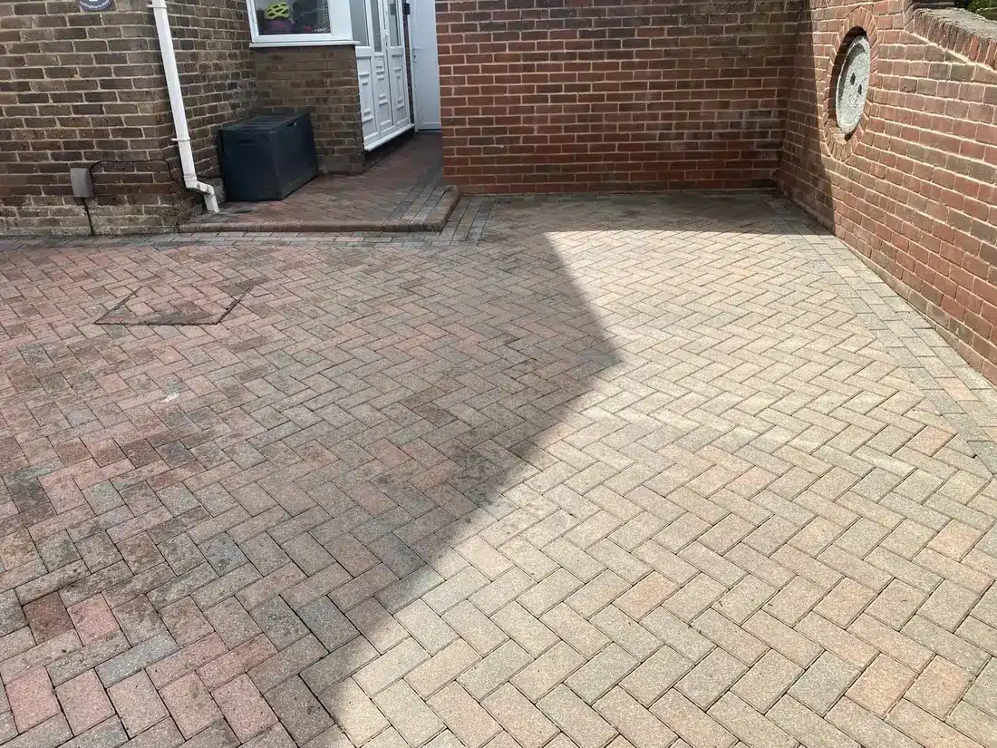 Block paving: joints are re-filled with kiln dried sand as standard.